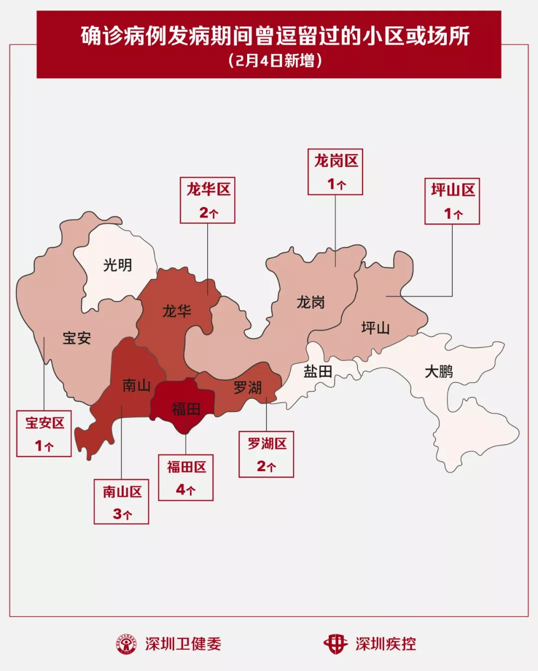 2月4日,疾控專業(yè)人員通過(guò)最新的流行病學(xué)調(diào)查確認(rèn),深圳新增14個(gè)小區(qū)(場(chǎng)所),有新確診的病人在出現(xiàn)病征期間曾經(jīng)逗留。
