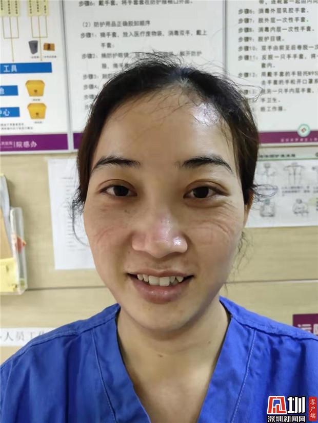 脫下防護(hù)服后“滿(mǎn)臉皺紋”。