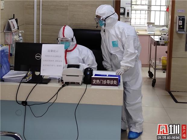 發(fā)熱門(mén)診工作人員相互鼓勵(lì)。