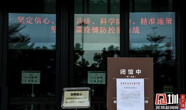 寶安圖書(shū)館:透過(guò)玻璃窗往里看,館內(nèi)空蕩蕩的場(chǎng)景與往日形成鮮明對(duì)比。