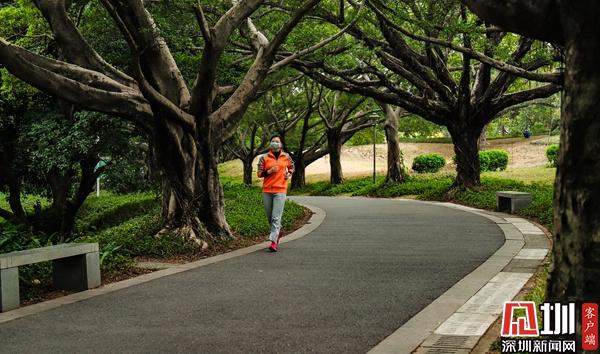 靈芝公園:有市民戴著口罩仍堅(jiān)持跑步。