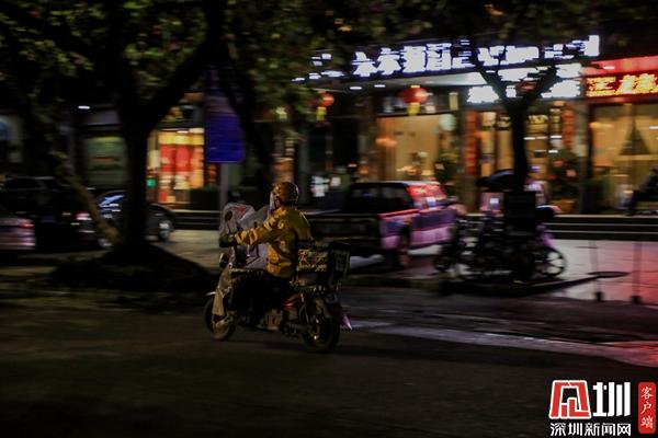 夜幕之下,路上只見(jiàn)外賣(mài)、快遞小哥在奔忙。