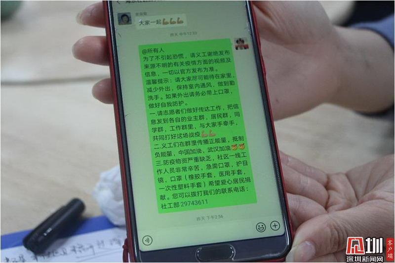 見圳客戶端·深圳新聞網(wǎng)2020年2月5日訊(見圳客戶端、深圳新聞網(wǎng)記者 吳梓欣)肺炎疫情,牽動著每個深圳人的心。一場關(guān)系到每位公民生命健康的疫情防控戰(zhàn)已經(jīng)打響,而他們作為這座城市的主人公之一也從未缺席,他們便是深圳義工。1月28日,深圳市寶安區(qū)新安街道海樂社區(qū)黨群服務(wù)中心社區(qū)工作站一則招募“防疫義工”的消息出現(xiàn)在海樂義工群里,僅一個小時便召齊了20名志愿者。