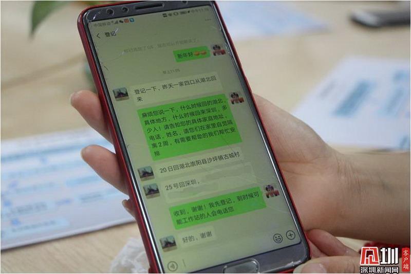 一名湖北籍返深住戶向吳麗報(bào)備返深情況。