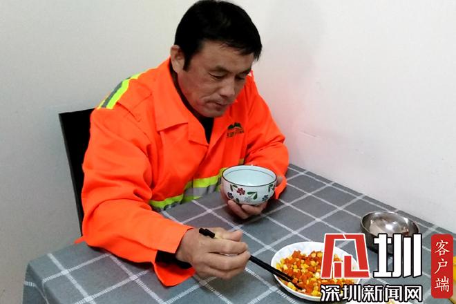 胡蘿卜丁炒玉米,再加一碟土豆絲下飯,這就是黃學(xué)志的午餐。黃學(xué)志說,他有幾年沒回老家了,本來計(jì)劃春節(jié)回去過年,順便帶老伴看病,沒想到疫情越來越嚴(yán)重,于是就打消了這個(gè)念頭。疫情發(fā)生以來,除了日常工作,他還要負(fù)責(zé)為值班同事普及疫情防控知識(shí)的任務(wù)。從早上7點(diǎn)半到12點(diǎn)半,下午1點(diǎn)半到5點(diǎn)半,他每天在沙頭角7個(gè)垃圾轉(zhuǎn)運(yùn)站、18個(gè)公廁來回奔走,給同事配送口罩及消毒用品,檢查他們的身體健康情況?!艾F(xiàn)在是疫情防控關(guān)鍵期,我們也希望為防控工作貢獻(xiàn)出來自環(huán)衛(wèi)清潔行業(yè)的一份力量。”黃學(xué)志說。(見圳客戶端、深圳新聞網(wǎng)記者鄧雪婷)