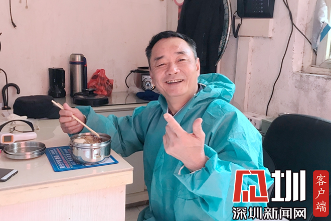 “吃飯沒有?還沒吃啊”“稍等下,要先測(cè)下體溫”……2月6日,龍崗區(qū)禾田路錦繡東方A區(qū)的保安廖師傅在崗位上忙著給出入的居民檢測(cè)體溫。廖師傅今年54歲,老家在廣東惠州,平常就住在附近小區(qū),在保安這個(gè)崗位上已經(jīng)工作了3年。