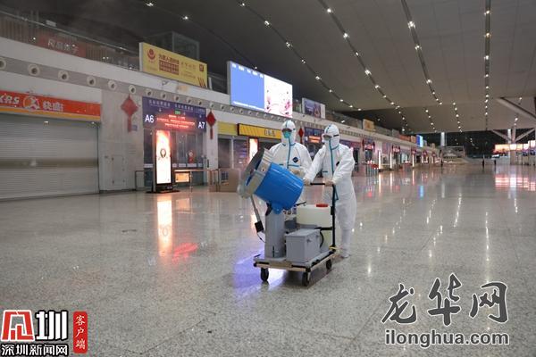 晚上11點,龍華區(qū)疾控中心對深圳北站進行全面消殺,時長約2小時,凌晨1點左右結束作業(yè)。