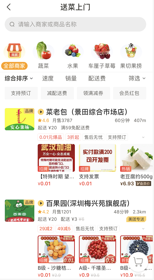 商品情況:店鋪較多,商品豐富。但部分門店因為運力不足,暫時關(guān)閉了線上派送,可先看看自己所在地區(qū)是否提供配送。
