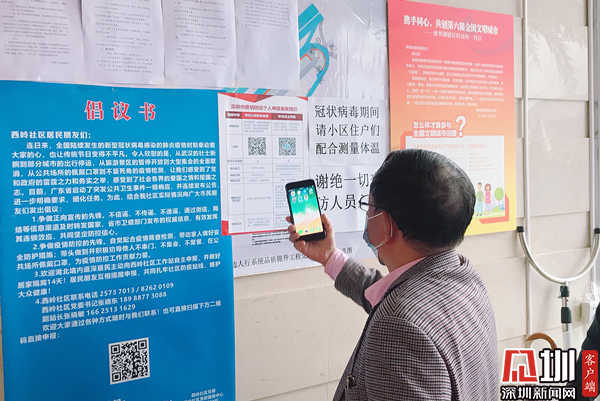 四季御園居民紛紛在小區(qū)門口掃碼“i深圳”自主申報。