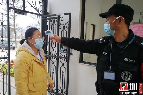 創(chuàng)業(yè)村是深汕合作區(qū)的公共住房,住在這里的都是在合作區(qū)工作的干部職工。“你好,請配合量下體溫?!眲傔M大門,小區(qū)的保安就幫記者先量體溫,還將體溫計上顯示的數(shù)據(jù)給記者看。除此之外,保安還檢查了記者身上所佩戴的工作證,工作證上有記者的照片、姓名等信息。等所有信息核對無誤后,保安就予以放行了。值得一提的是,“檢查工作證”這項流程也是深汕合作區(qū)防控疫情的創(chuàng)新舉措之一,有效地提升防控效果。