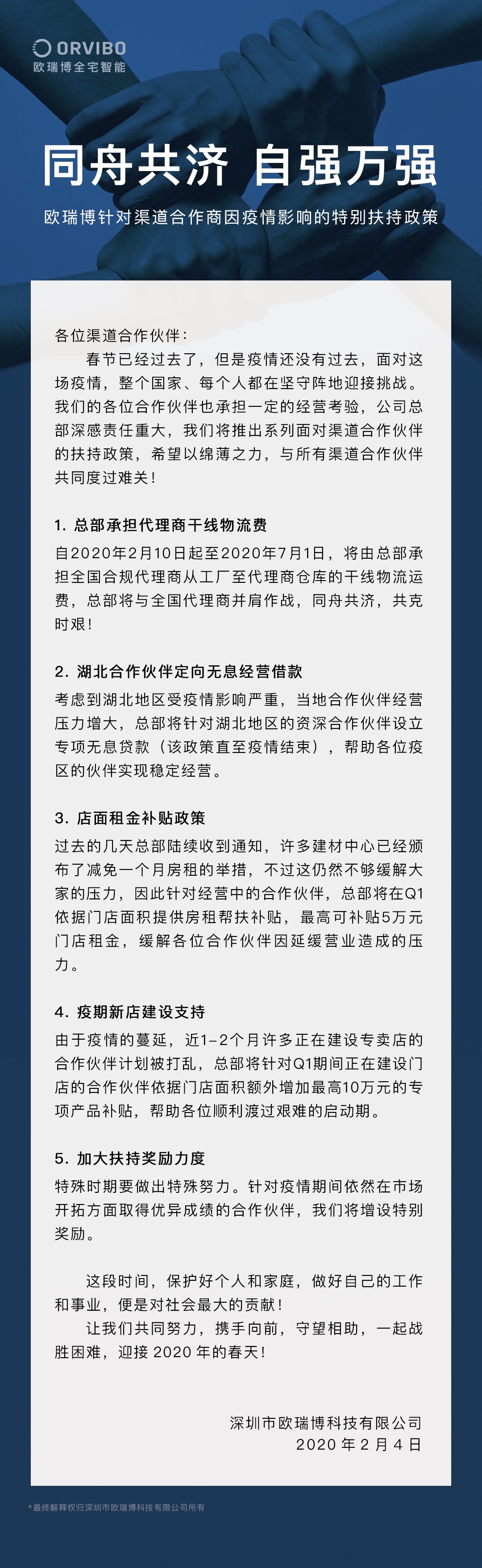 深企歐瑞博發(fā)布多項扶助政策 幫助合作商共渡疫情難關