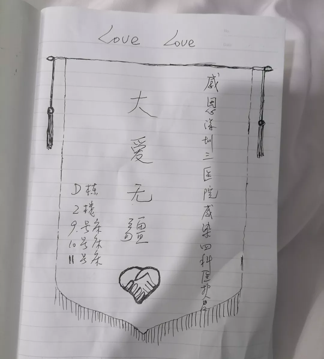 2月11日,深圳市三醫(yī)院兒科護士們收到了一個用好麗友餅干盒制作的手工賀卡,上面寫著“送給鐘護士和你們!謝謝你們”,賀卡上還畫了一張笑臉和四個心形。