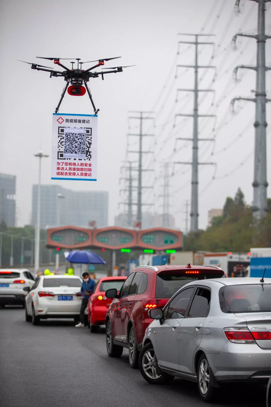 隨著返深車輛和人員的增加,深圳從8日開始啟用線上車輛申報登記。為提高申報效率,搭載喊話器、懸掛申報二維碼的無人機成為防疫一線工作人員的得力助手。民警操作無人機在車輛隊伍中穿梭,并通過喊話器提醒駕乘人員掃碼登記,減少人員接觸的同時提高了效率。