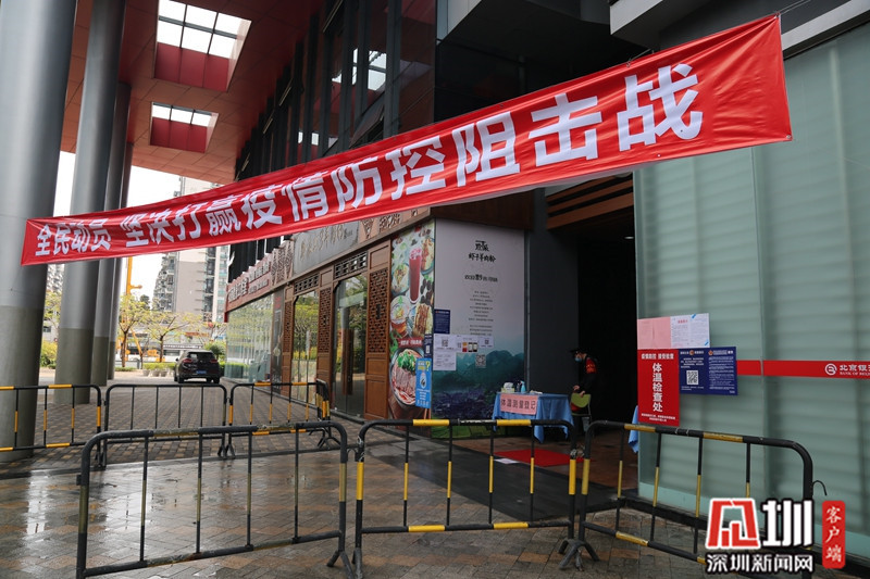 2月14日,龍崗天安數(shù)碼城內(nèi),一條關于疫情防控宣傳的橫幅懸掛在大廈進出口。