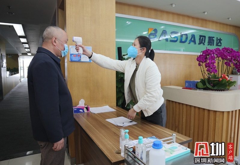 貼著紅對聯(lián)的大門敞開,前臺工作人員帶著口罩整理資料。遇到有同事進入,她提筆登記,隨后拿起測溫槍為同事測體溫,合格后讓入。2月14日,記者在深圳市貝斯達醫(yī)療股份有限公司(以下簡稱貝斯達公司)位于龍崗天安數(shù)碼城的辦公點看到,這里已經(jīng)復工復產(chǎn),公司也逐漸恢復運行。