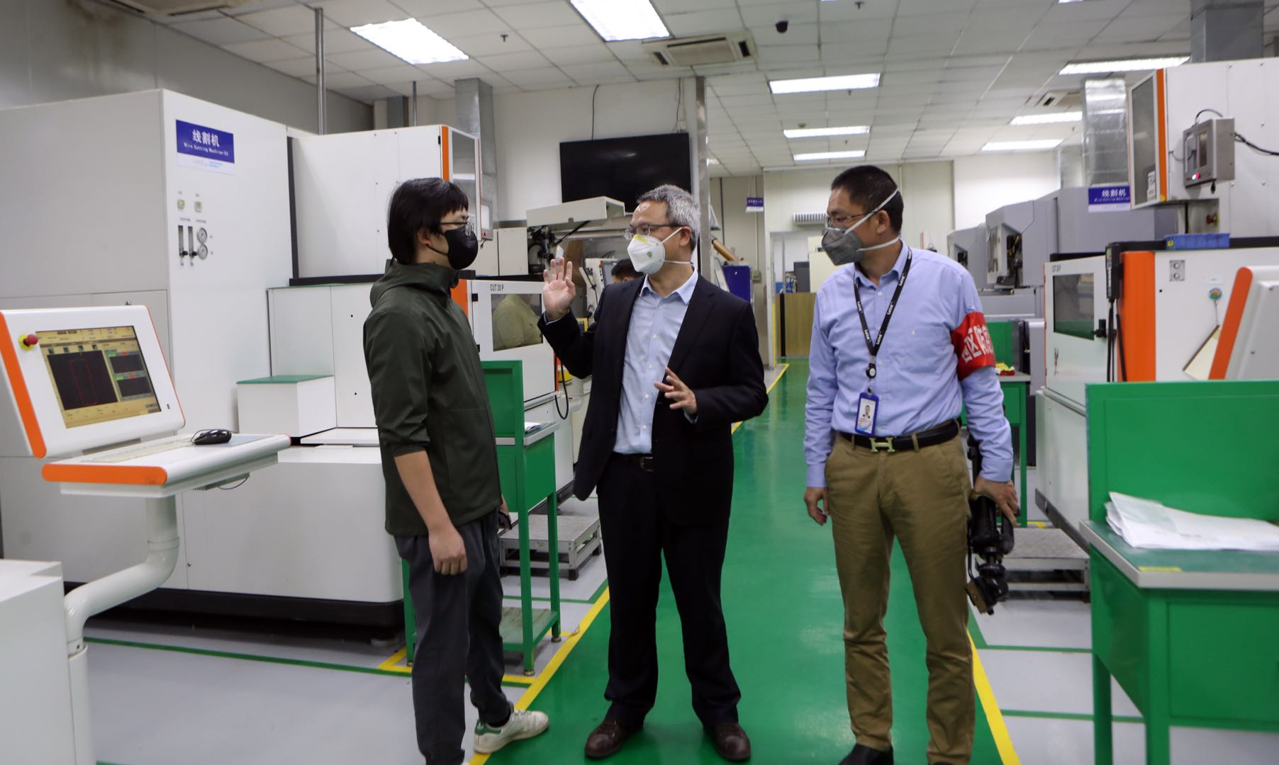 在工作車間,記者看到,每一位員工都背對背而坐,且員工之間保持著大約1.5米的距離,并被擋板完全隔開。
