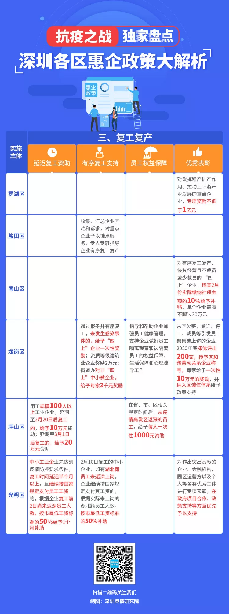 2020年2月13日,龍崗區(qū)政府公布《龍崗區(qū)關(guān)于支持企業(yè)做好新型冠狀病毒肺炎疫情防控工作有序復(fù)產(chǎn)復(fù)工的若干措施》;