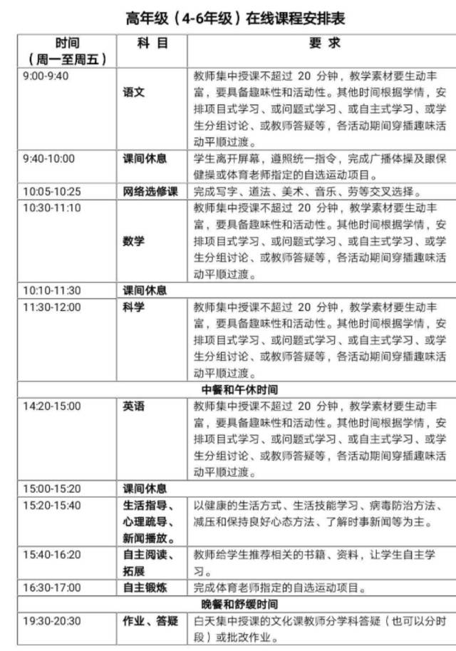 于女士向小編展示了其大女兒學校的在線課程安排表: