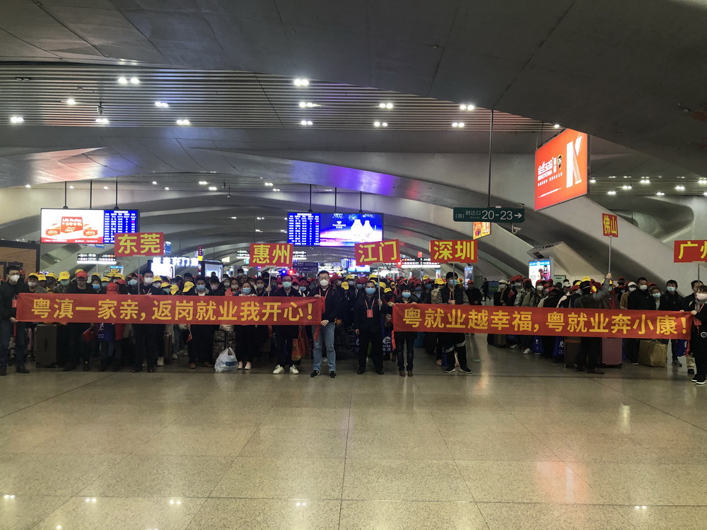 見圳客戶端·深圳新聞網(wǎng)2020年2月19日訊 2月18日14時(shí)36分,載有496名云南籍務(wù)工人員的D4856次列車從昆明南站開出,于當(dāng)日22時(shí)36分抵達(dá)廣州南站,全面拉開了省際協(xié)作組織異地務(wù)工人員節(jié)后有序返粵返崗的序幕。據(jù)悉,這是廣東省人社廳和云南省人社廳共同策劃,“點(diǎn)對點(diǎn)”訂制打造的首趟返粵專列,車上的乘客都是節(jié)前已在廣東就業(yè)的返鄉(xiāng)員工,分別來自云南昆明、曲靖、紅河、昭通等7個(gè)市州。雖然現(xiàn)在新冠肺炎疫情還未完全過去,但這496名務(wù)工人員將帶著政府免費(fèi)提供的返崗專列“大禮包”,乘著憧憬與希望,分別前往廣州、深圳、佛山、東莞、惠州等市開始新一年的工作和生活。來自云南文山州的李先生在采訪中激動(dòng)表示,自己已在廣東工作兩年多,廣東的就業(yè)環(huán)境好,這次能在政府幫助下免費(fèi)回來上班,一路上還有人社部門工作人員帶隊(duì)指引,感到非常幸運(yùn),一定會(huì)好好珍惜,努力工作。