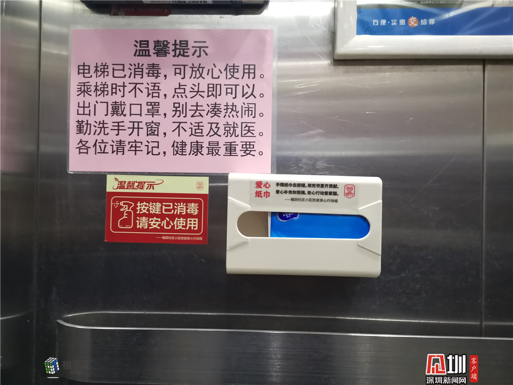 除了落實(shí)“五個100%”、“十個一律”等社區(qū)聯(lián)防聯(lián)控硬核舉措外,福田區(qū)安心行動細(xì)微之處見真章,工作人員模擬小區(qū)居民,從出家門開始到小區(qū)門口,所必經(jīng)的區(qū)域進(jìn)行實(shí)地感受,督促配合物業(yè)對小區(qū)防火門、電梯內(nèi)外、樓道、樓梯扶手、大門把手、公共座椅等公用設(shè)施每日消毒并公示記錄,電梯間統(tǒng)一設(shè)置按鍵公用紙及紙巾回收處等一些小細(xì)節(jié),讓居民能看見實(shí)實(shí)在在的防疫措施而感到放心、安心。