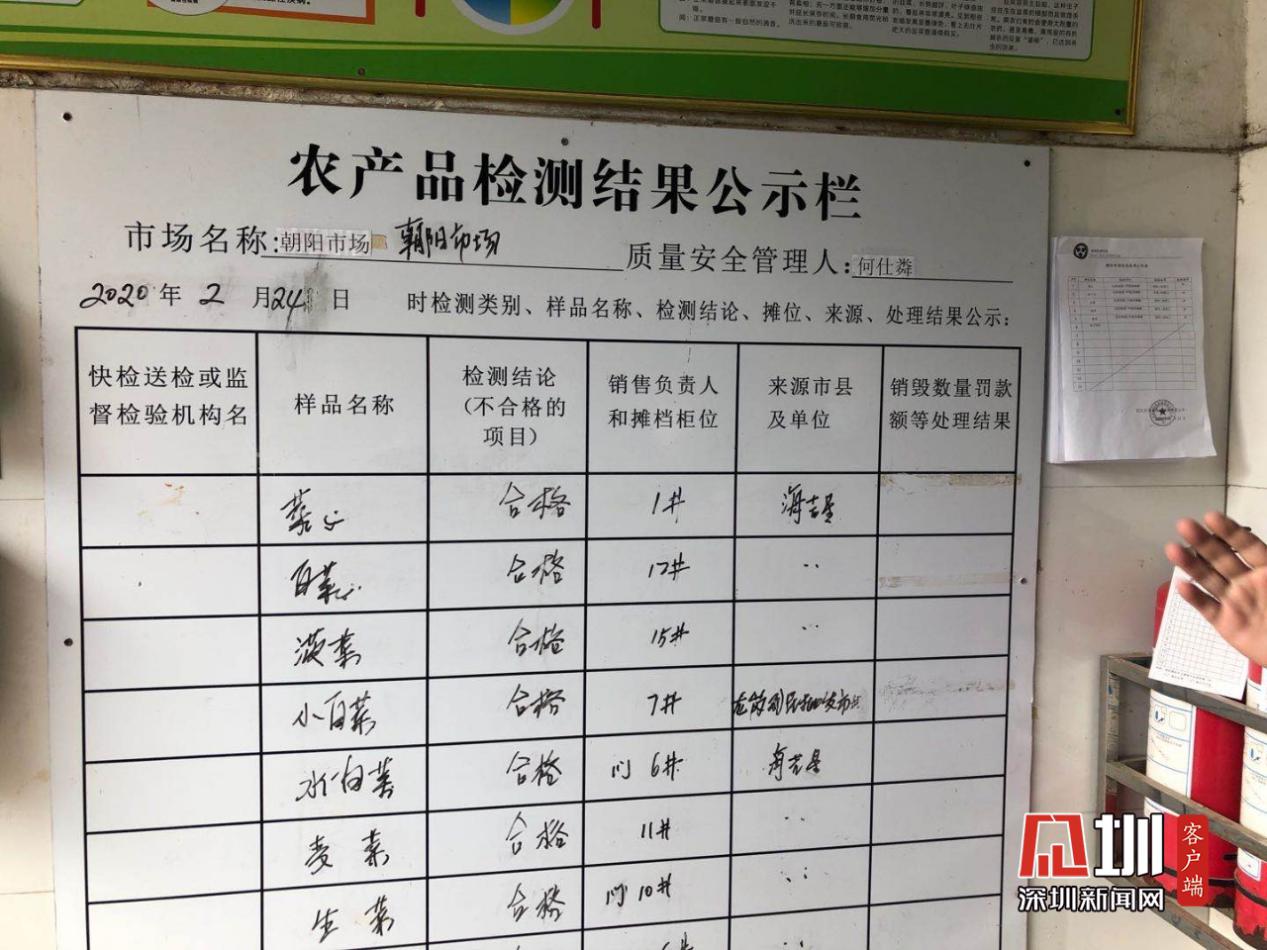 “朝陽肉菜市場從2005年開始開辦,市場占地面積為2480平方米,建筑面積和經營面積均為2220平方米,目前市場經營攤檔共有82檔。市場附近有三個社區(qū),每天有將近兩萬居民都會來這個市場采購食材。市場設有農殘檢測設施,每天都會對進貨的蔬菜進行農殘檢測并公示?!笔袌鲐撠熑苏f道。