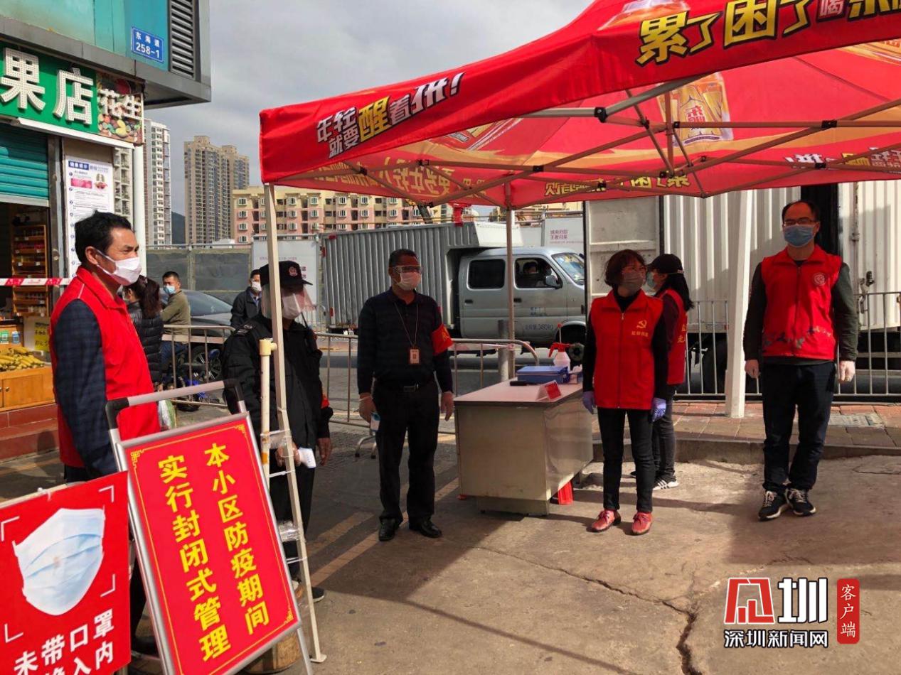朝陽肉菜市場門口處進行圍合管理并配備專人進行體溫監(jiān)測