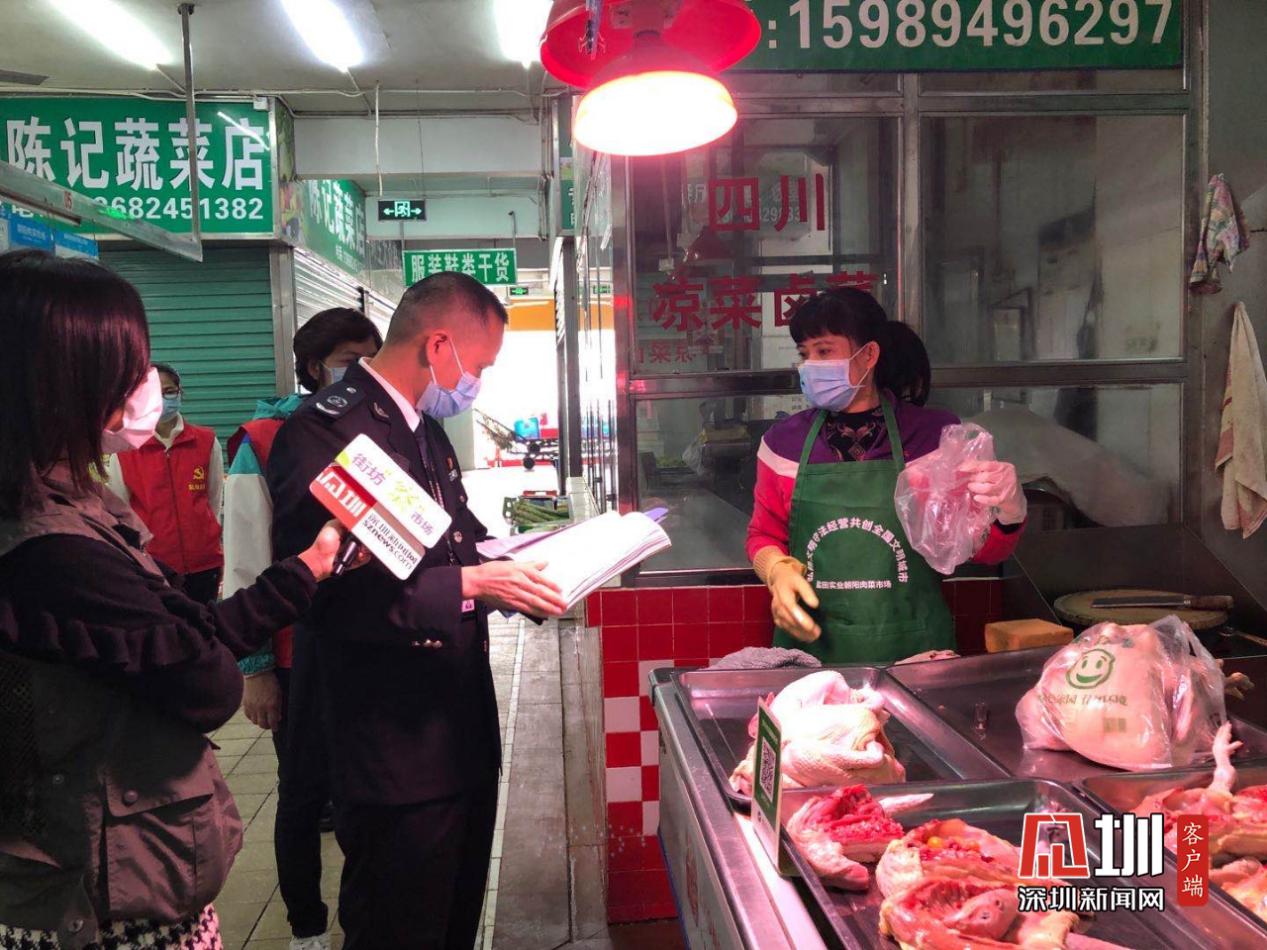 深圳市市場監(jiān)管局鹽田所執(zhí)法人員藍華榮表示,朝陽肉菜市場是從年初二開始營業(yè)的,鹽田所從年初二開始,每天都會對這個市場進行檢查。目前除了日常檢查之外,還會對市場的防疫防控工作進行檢查。“疫情期間主要檢查市場是否有售賣野味和商戶是否有佩戴口罩,當?shù)谝淮伟l(fā)現(xiàn)商戶沒有戴口罩時,執(zhí)法人員會發(fā)放一份責令改正通知書給商戶,第二次還被發(fā)現(xiàn)沒有戴口罩的話,市監(jiān)部門將通知公安部門。”執(zhí)法人員介紹道。