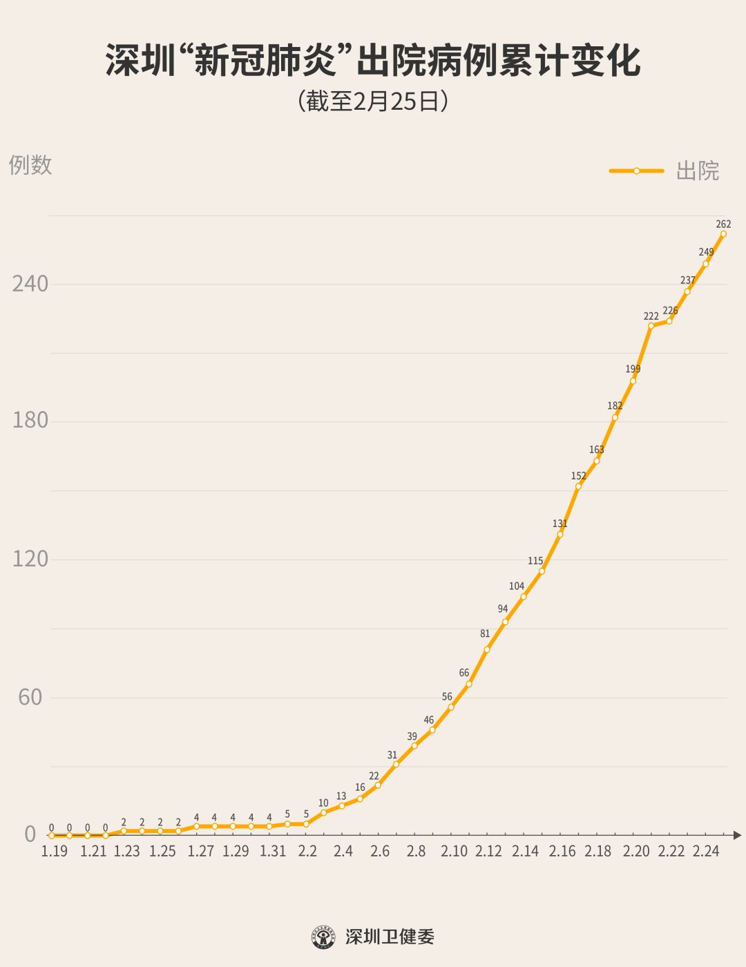 2月25日下午,經(jīng)專家組會診,深圳有13名新型冠狀病毒肺炎確診患者出院,累計達(dá)262人,連續(xù)23天有人出院。