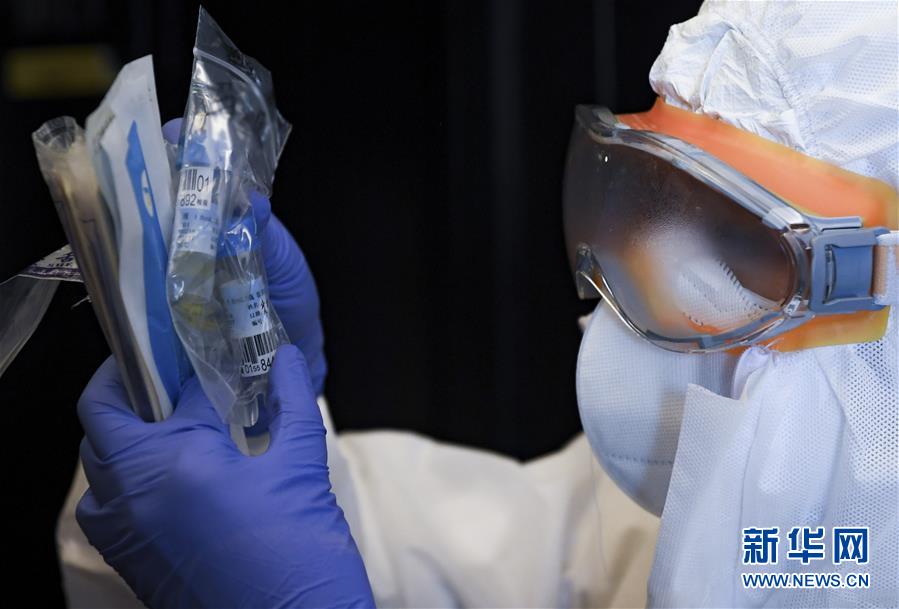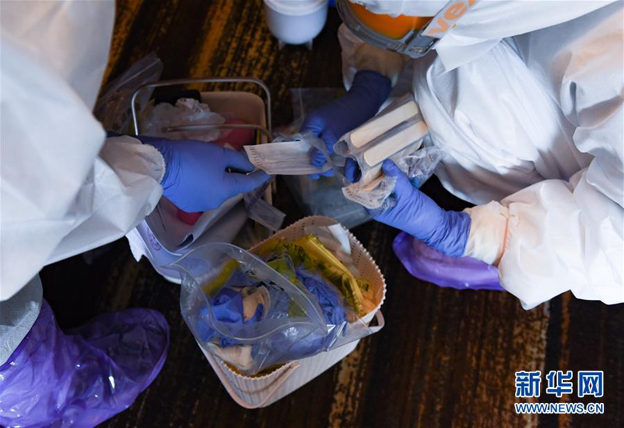 2月27日,在深圳龍崗的一家“健康驛站”,工作人員進行咽拭子采集前的準(zhǔn)備。 新華社記者 毛思倩 攝