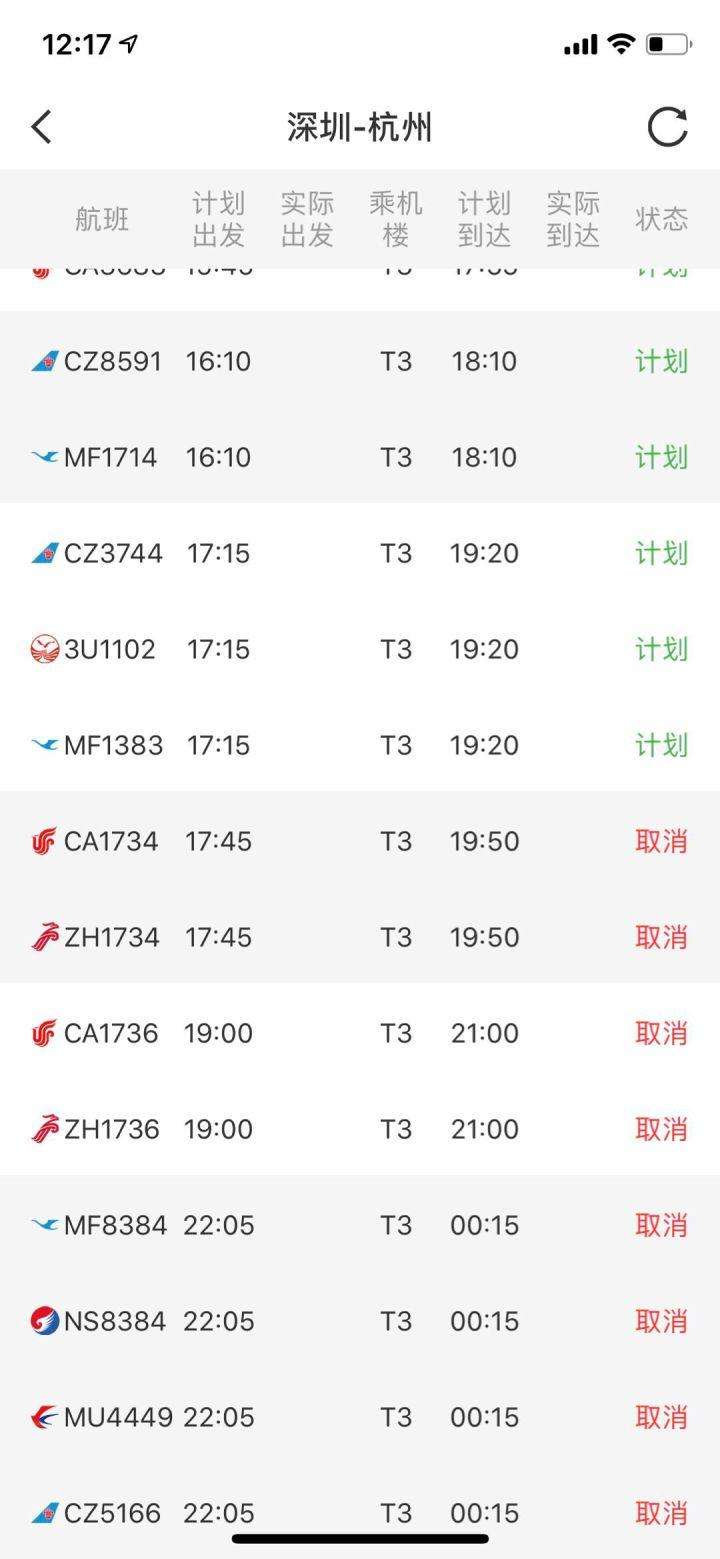 原標題:今天17:15后,深圳、廣州飛往杭州航班全部取消,部分因“公共安全原因”取消
