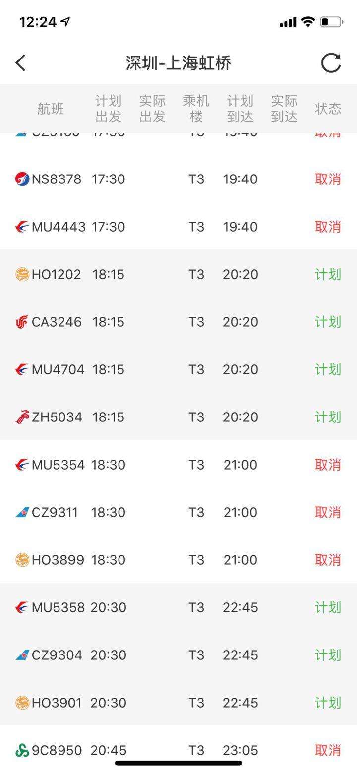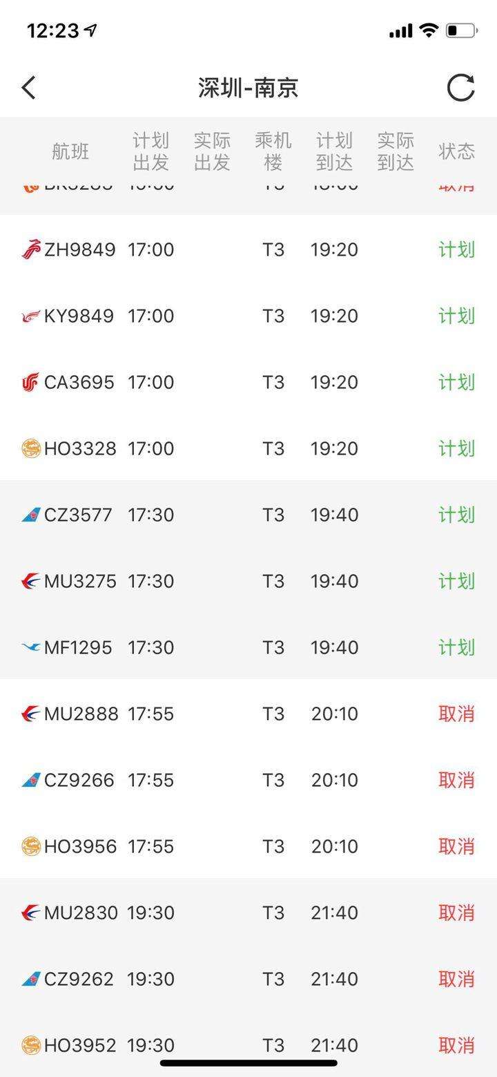 不僅是深圳飛往杭州的CA1736航班,記者發(fā)現(xiàn),今晚深圳飛往北京、上海、南京等國內多個城市的航班,均顯示為取消狀態(tài)。而原計劃17:45由深圳飛往杭州的CA1734和原計劃22:05由深圳飛往杭州的MF8384航班,均顯示為取消狀態(tài)。