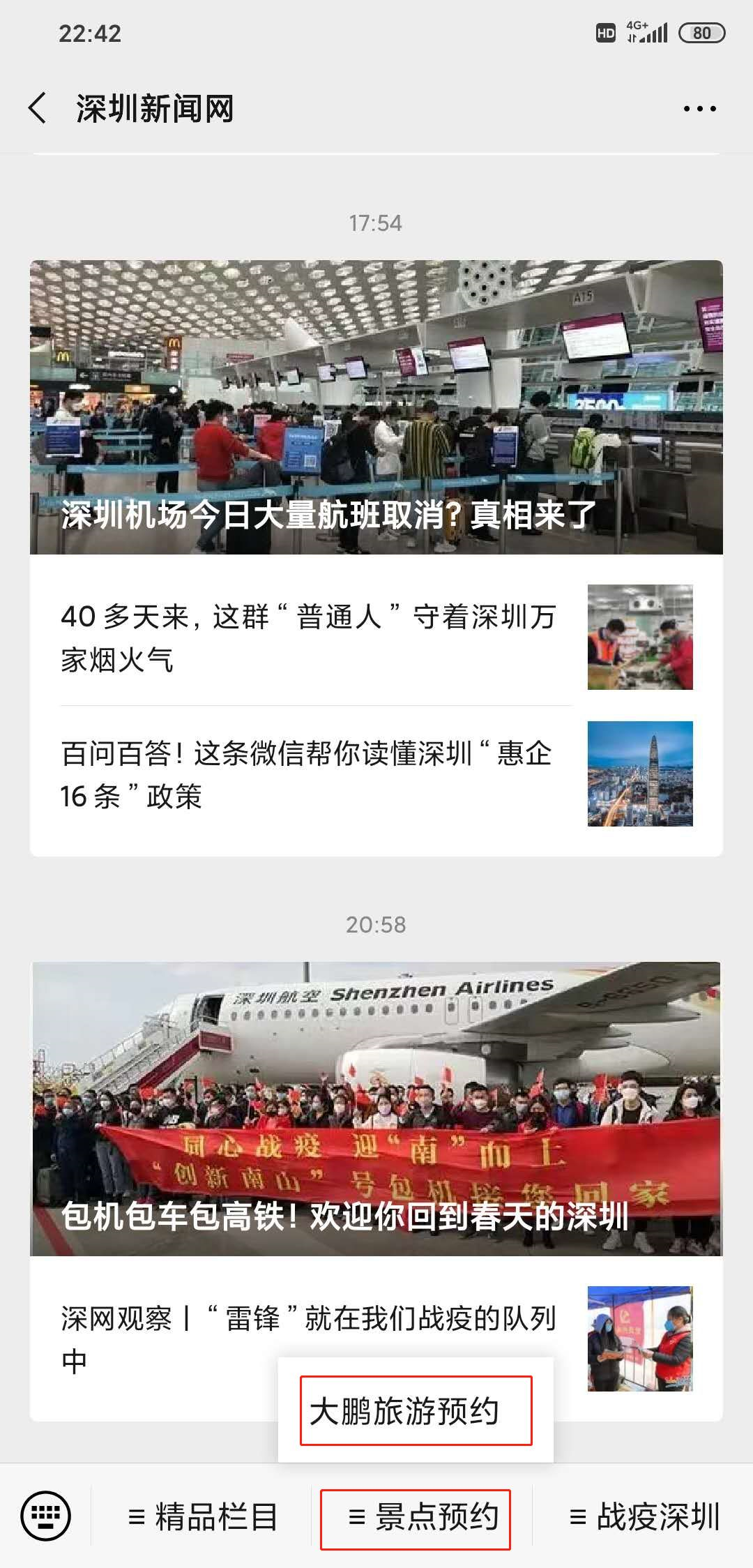 ⑨3月6日起至疫情防控期結(jié)束,配合大鵬新區(qū)兼顧疫情防控和旅游景區(qū)、住宿業(yè)發(fā)展的前提下,采取分類分步方式開(kāi)放旅游景區(qū)工作,“疫情防控期大鵬新區(qū)旅游預(yù)約平臺(tái)”正式上線,即日起所有前往新區(qū)游客(含住宿與非住宿)出發(fā)前3至1日均需進(jìn)行實(shí)名預(yù)約。(預(yù)約方式請(qǐng)見(jiàn)下圖)