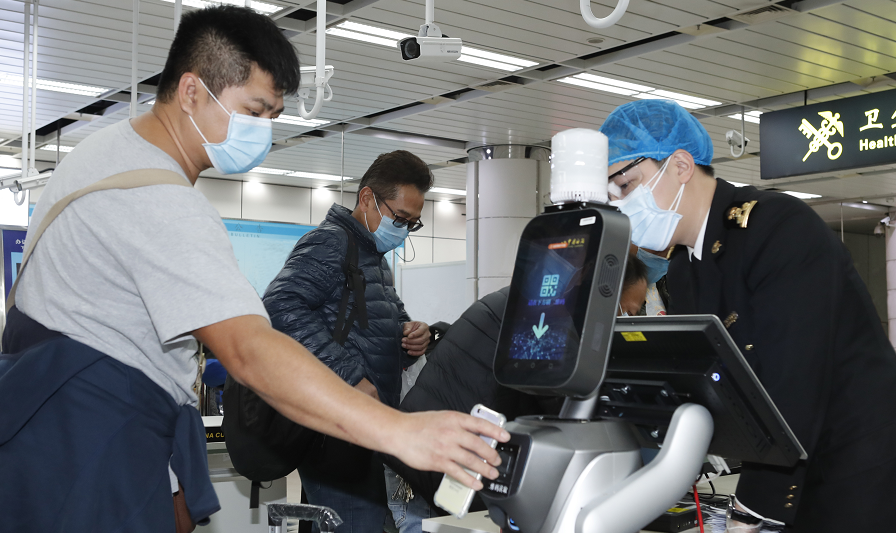 而隨著返深車輛和人員的增加,深圳從2月8日開始啟用線上車輛申報登記。緊接著,在G94高速深圳觀瀾收費處,懸掛有申報二維碼的無人機,成為防疫一線工作人員的得力助手。據(jù)了解,目前深圳市已對所有進出車輛實施掃碼線上申報。而在深圳鶴洲檢查站,由深圳市公安局寶安分局聯(lián)合優(yōu)必選科技等合作單位共同打造的“黃田田”,每逢返深車輛經(jīng)過總會在路邊提醒入深人員掃碼登記。這是全國首款用在基層派出所滿足實戰(zhàn)需求的5G機器人。