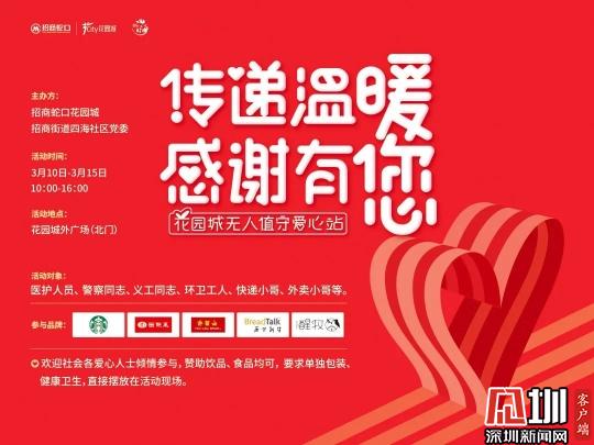 為了向這群最可愛的人表達(dá)我們的感恩、感動,招商街道四海社區(qū)黨委攜手招商蛇口花園城,共同開啟“無人值守愛心站”公益活動,每天提供上千份愛心食品免費領(lǐng)取,感謝在這座城市里那些不斷奔波守護(hù)著大家生活的平凡英雄們。