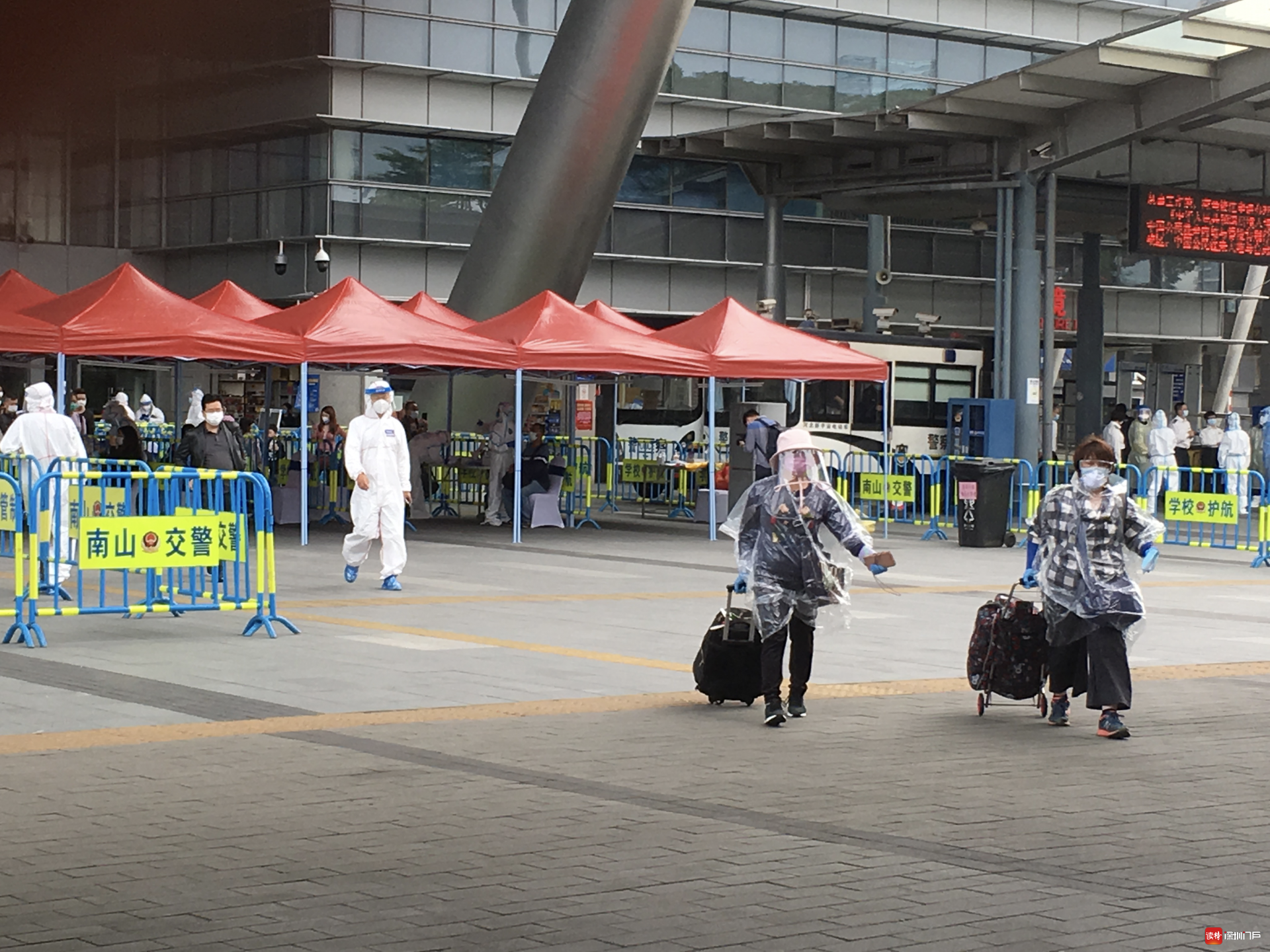 “排隊(duì)排了好幾個(gè)小時(shí),終于出來(lái)了!”頭戴帽子、護(hù)目鏡和口罩,外加一襲透明“雨衣”的趙女士把自己包裹得嚴(yán)嚴(yán)實(shí)實(shí),走到深圳灣口岸北廣場(chǎng)外才把帽子摘了,額頭微微出汗。她告訴記者,上午10點(diǎn)鐘她從香港出境,直到下午2點(diǎn)才通關(guān)。香港居民鐘先生是一名大學(xué)生,因老家有事才入境,他比趙女士要幸運(yùn)一些,從11點(diǎn)開(kāi)始通關(guān)的他花了2個(gè)多小時(shí)。