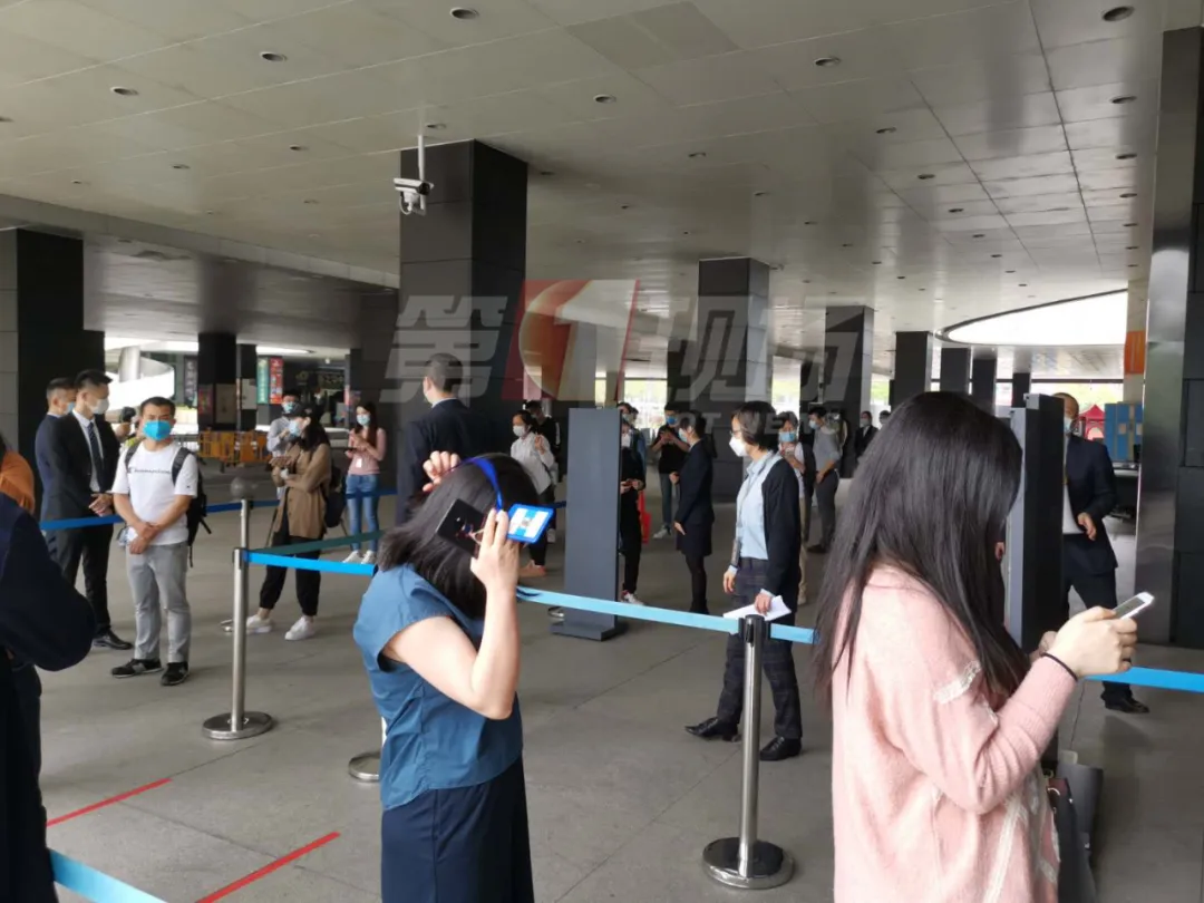 ●場所只開啟了唯一一個進(jìn)出通道,預(yù)約人員在這里檢測體溫和登記;