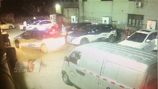 監(jiān)控畫面顯示,25日晚上23點(diǎn)左右,一輛出租車和一輛面包車先后到達(dá)龍崗大道木棉灣路段的一個充電站。出租車司機(jī)先找到了一個位置,準(zhǔn)備倒入充電時,后面的面包車突然往前開,兩名司機(jī)因?yàn)橥\囄坏膯栴}發(fā)生爭執(zhí)。隨后,出租車司機(jī)下車?yán)碚?,動手推搡了面包車司機(jī)一下。
