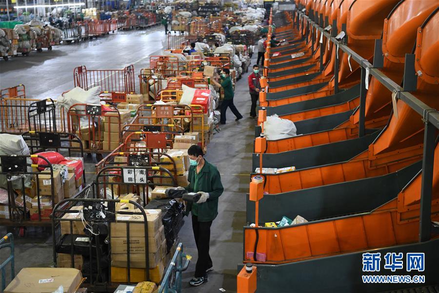 4月1日,在深圳郵件處理中心,工作人員在分揀郵件。據(jù)深圳市郵政管理局介紹,春節(jié)以來(lái),深圳郵政快遞業(yè)累計(jì)向湖北運(yùn)送各類(lèi)醫(yī)療、防疫物資超2萬(wàn)批次,累計(jì)為深圳市民配送防疫物資和生活必需品超過(guò)2.5億件,為防疫物資和群眾基本生活必需品送達(dá)提供了有力保障。新華社記者 梁旭 攝