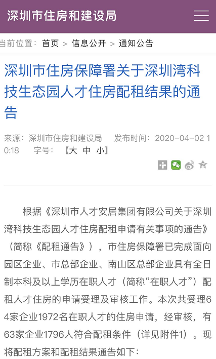 深圳特區(qū)報2020年4月2日訊 讀特記者4月2日從深圳市住房保障署獲悉,該署已完成面向園區(qū)企業(yè)、市總部企業(yè)、南山區(qū)總部企業(yè)具有全日制本科及以上學歷在職人才(簡稱“在職人才”)配租人才住房的申請受理及審核工作。本次共受理64家企業(yè)1972名在職人才的住房申請,經(jīng)審核,有63家企業(yè)1796人符合配租條件。相關信息可登錄深圳市住房和建設局網(wǎng)站查看。