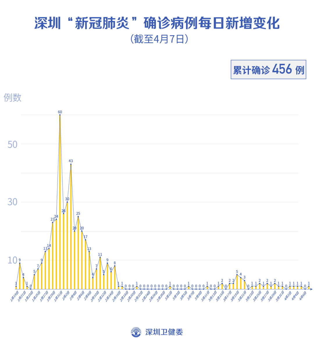 截至4月7日24時(shí),深圳累計(jì)報(bào)告新冠肺炎病例456例。4月7日當(dāng)天新增境外輸入病例1例,新增無癥狀感染者1例,出院1例。