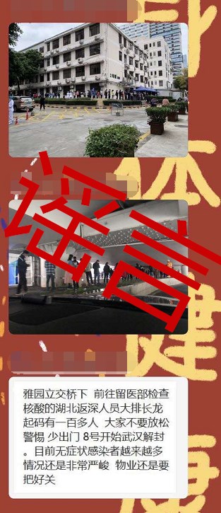 這則網(wǎng)帖稱:“在羅湖區(qū)雅園立交橋下,前往留醫(yī)部檢查核酸的湖北返深人員‘排長龍’。無癥狀感染者越來越多,情況非常嚴峻,提醒物業(yè)把好關。”根據(jù)網(wǎng)傳的兩張照片,記者發(fā)現(xiàn)拍攝地點分別為深圳市人民醫(yī)院院內(nèi)以及疑似雅園立交橋洞下。
