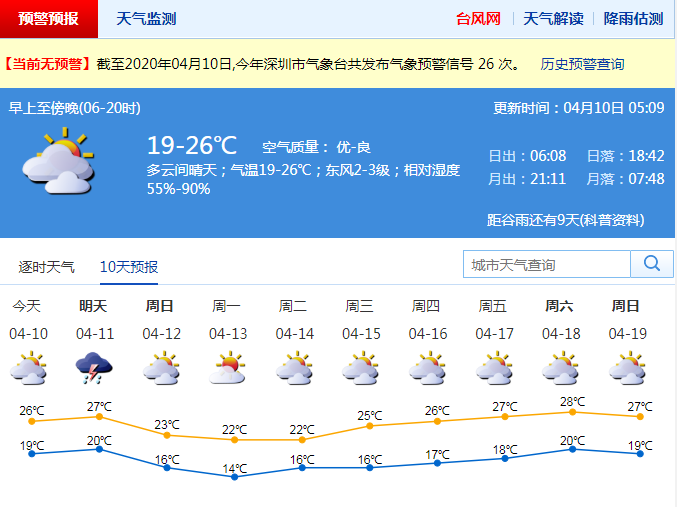 見圳客戶端·深圳新聞網(wǎng)2020年4月10日訊 連續(xù)多日的降雨終告一段落。9日我市多云可見陽(yáng)光,多日不見的太陽(yáng)終于回歸,白天氣溫攀升也十分明顯,最高氣溫達(dá)到25℃-27℃。