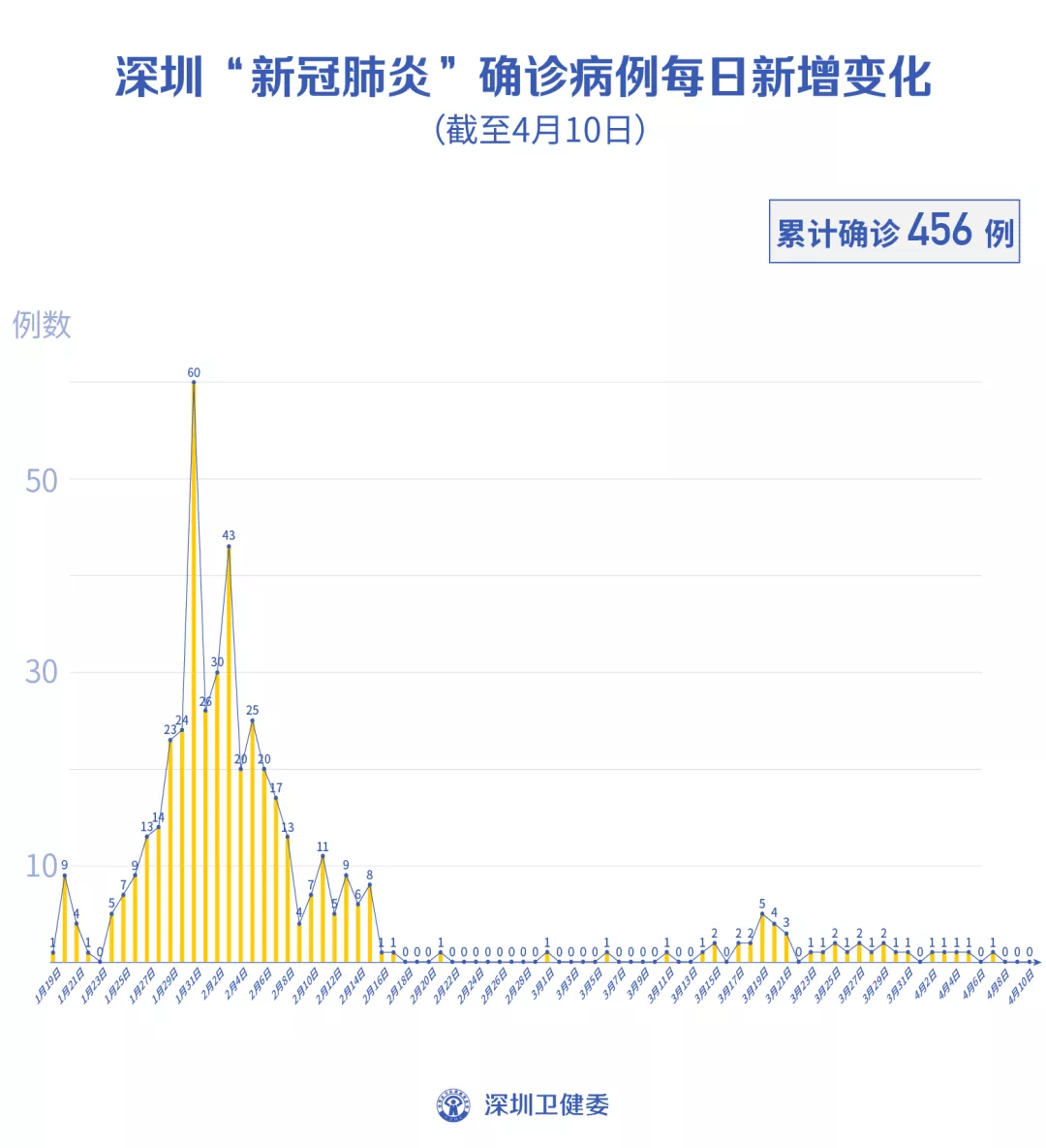 截至4月10日24時,深圳累計報告新冠肺炎病例456例。
