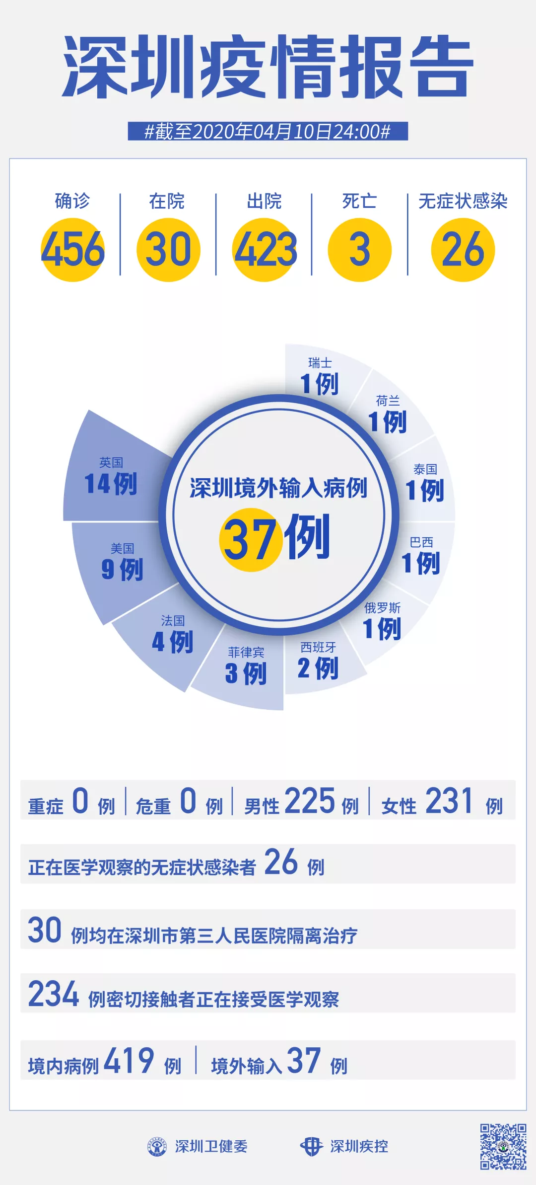 截至4月10日24時(shí),深圳累計(jì)報(bào)告新冠肺炎病例456例。