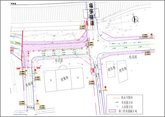 第一階段:對桂花路(福保隧道-香樟道段)南半幅(靠紅樹福苑側(cè))進行封閉占用施工,北半幅臨時調(diào)整為三車道,一車道西行(進保稅區(qū)方向),兩車道東行(出保稅區(qū)方向)。行人及非機動車輛可通過現(xiàn)狀公園側(cè)人行道或紅樹福苑退線空間通行。自4月20日起,本階段預(yù)計持續(xù)施工60天。