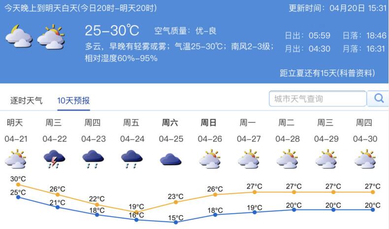 21日深圳最高氣溫依舊30℃以上!不過,冷空氣要來滅火了
