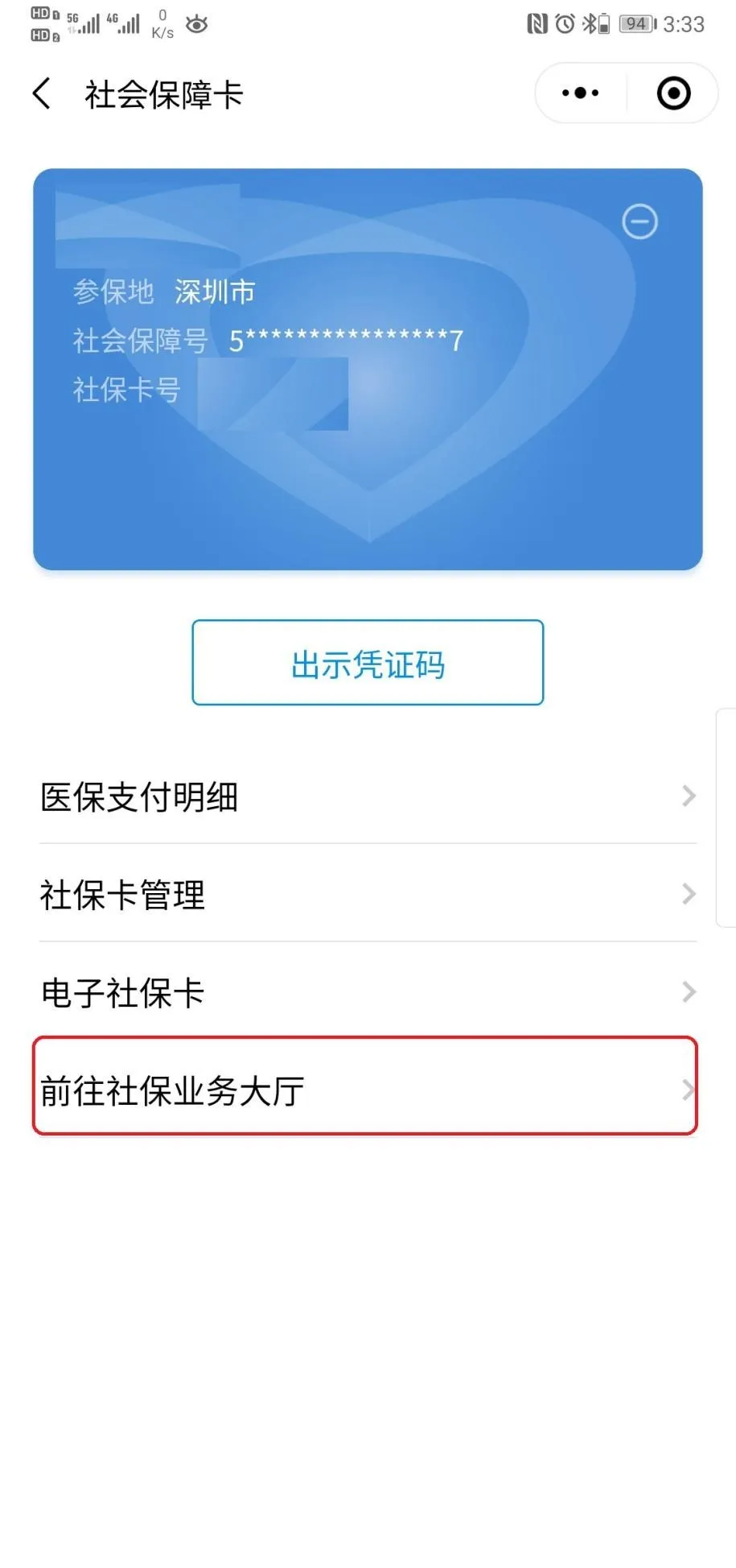 2、添加后點擊進入“社會保障卡”—“前往社保業(yè)務大廳”;