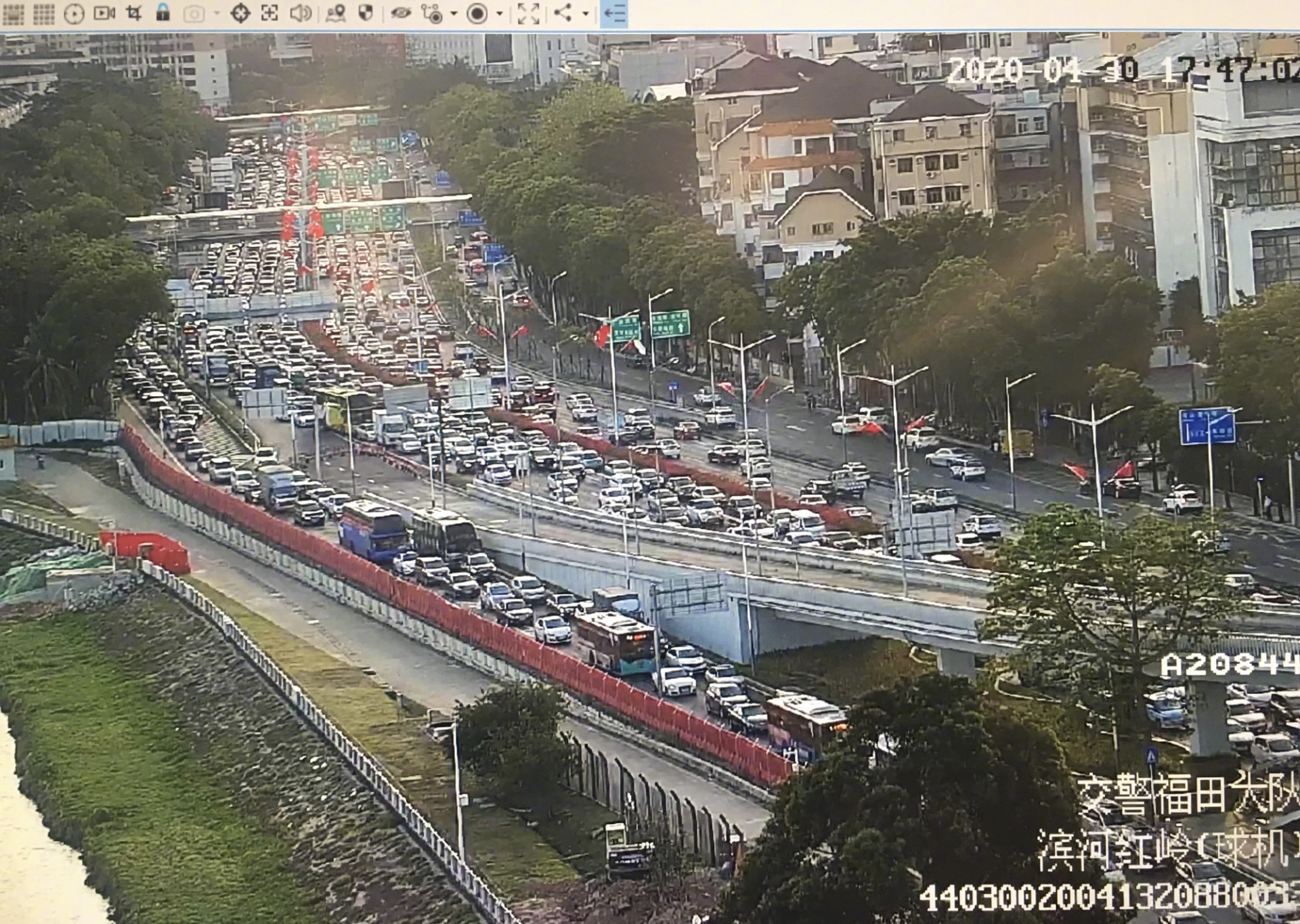 濱河大道是深圳市最先進(jìn)入晚高峰節(jié)奏的道路,15時(shí)30分,濱河大道寶安立交路段西往東方向開(kāi)始出現(xiàn)車多緩行。車流量慢慢增多,到18時(shí)許,濱河大道西往東方向發(fā)生嚴(yán)重交通擁堵,從竹子林立交到鹿丹村路段一片“紅燈”。