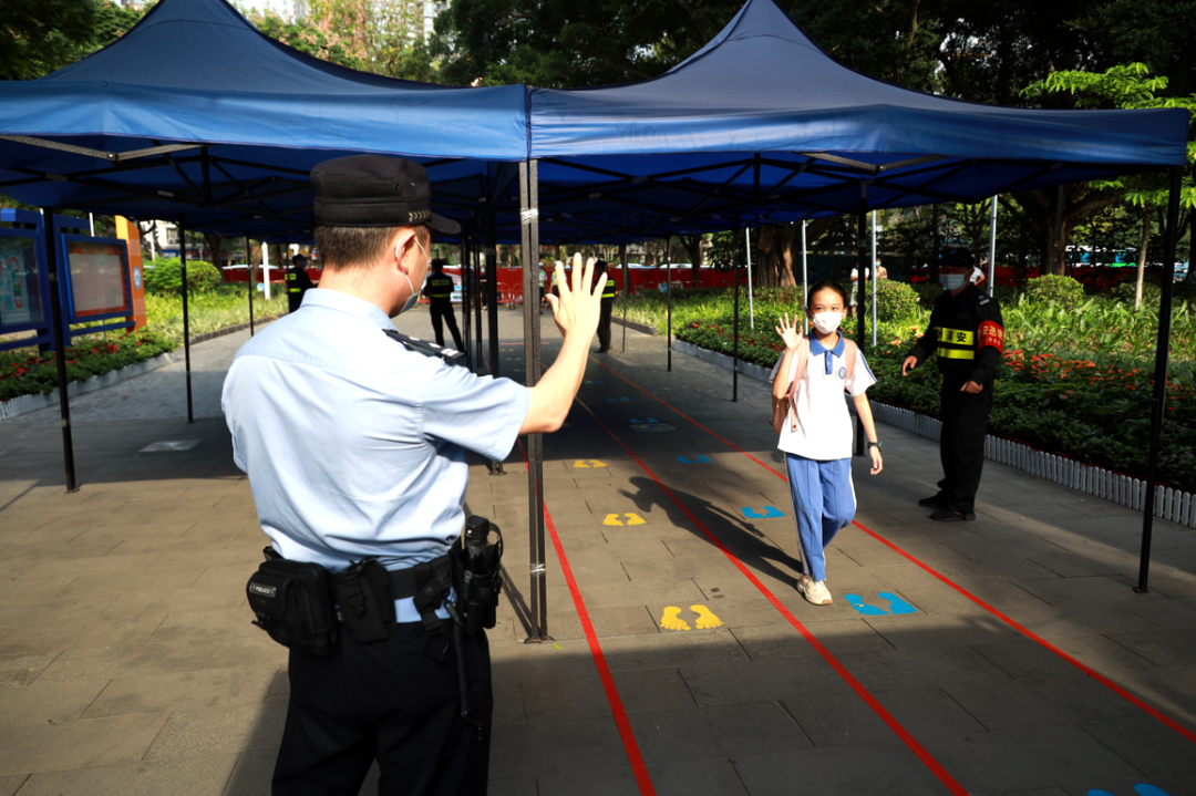 綠樹陰濃夏日長,恰是讀書好時節(jié)。5月11日,深圳市第二批學(xué)生返校復(fù)課。按照深圳市公安局和福田區(qū)委區(qū)政府關(guān)于復(fù)學(xué)復(fù)課的部署要求,深圳市公安局福田分局全面開啟“護學(xué)模式”,做實做細(xì)各項防控舉措,為福田學(xué)子們營造安全有序的開學(xué)環(huán)境,全力護航校園安全。據(jù)統(tǒng)計,5月11日,福田公安分局共出動警力870人次,發(fā)動保安員1105人次、護學(xué)崗力量953人次,保障全區(qū)105所學(xué)校,10.6萬名學(xué)生安全返校復(fù)課。