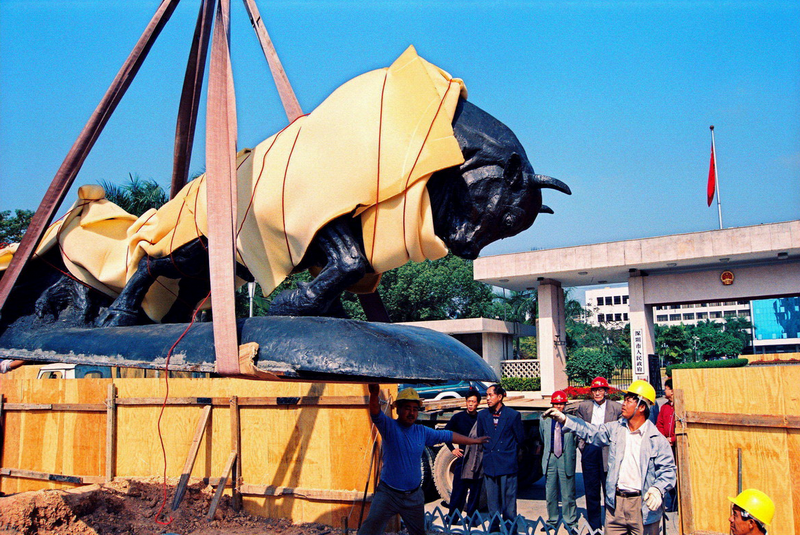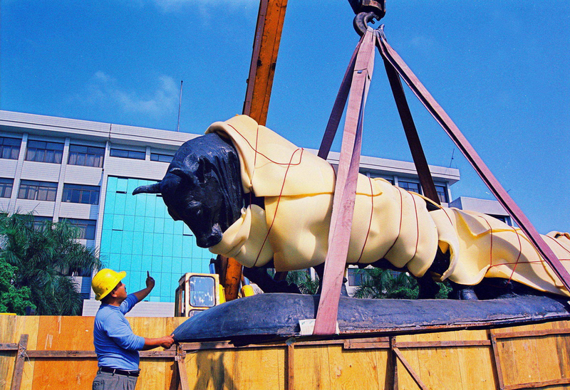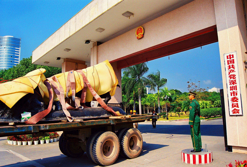 1999年2月6日,深圳“孺子牛”雕塑遷移到深圳市委大院門前。(組圖)(攝影:韋建誠)